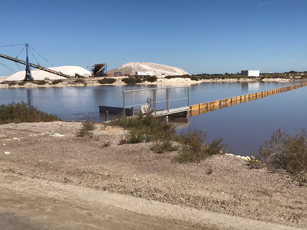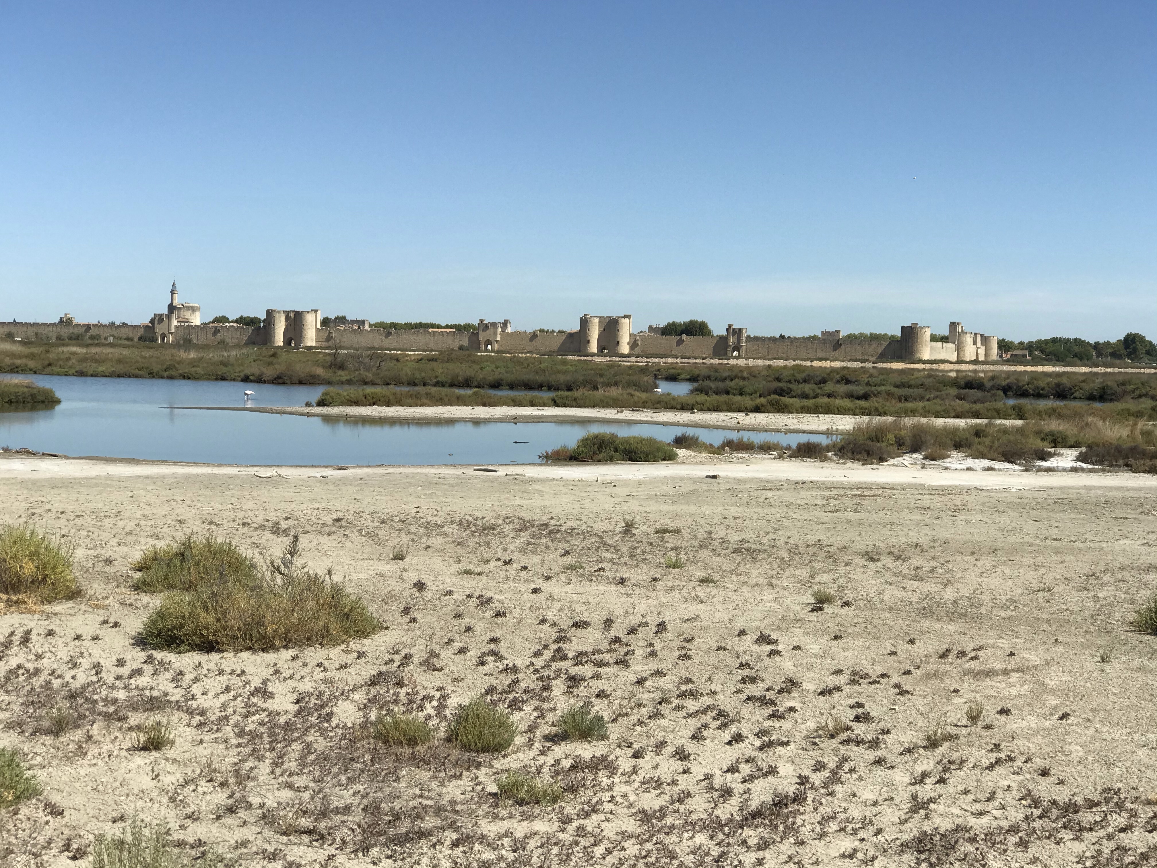 Le premier arrêt se fait en bas de la « camelle ». C’est une montagne de sel que l’on peut gravir afin d’avoir un splendide point de vue. De là-haut vous pouvez avoir une vue d’ensemble sur les salins, ainsi que sur la ville d’Aigues-Mortes.