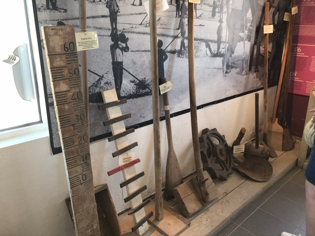 Le second arrêt s’effectue à la salle d’exposition. C’est une sorte de petit musée, où sont exposés des outils, des créations en sels, une représentation des salins…
