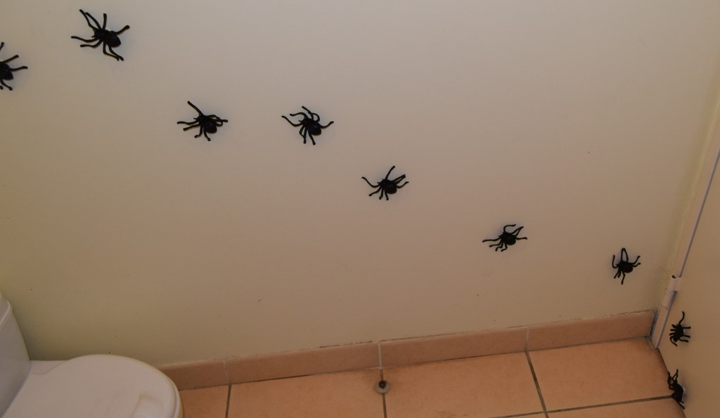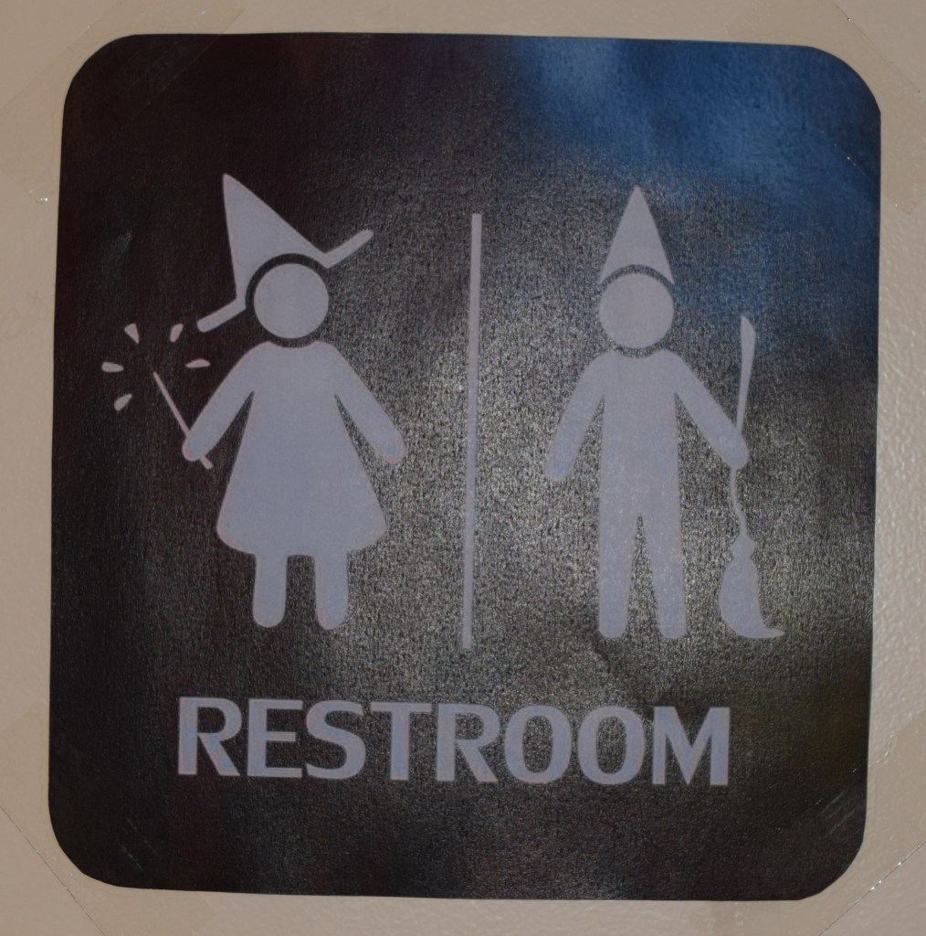 Les toilettes aussi ont eu droit à son petit relooking avec Mimi dans le miroir, l’accès au ministère de la magie et bien sur, le chemin des araignées. N’oubliez pas, « suivez les araignées ».